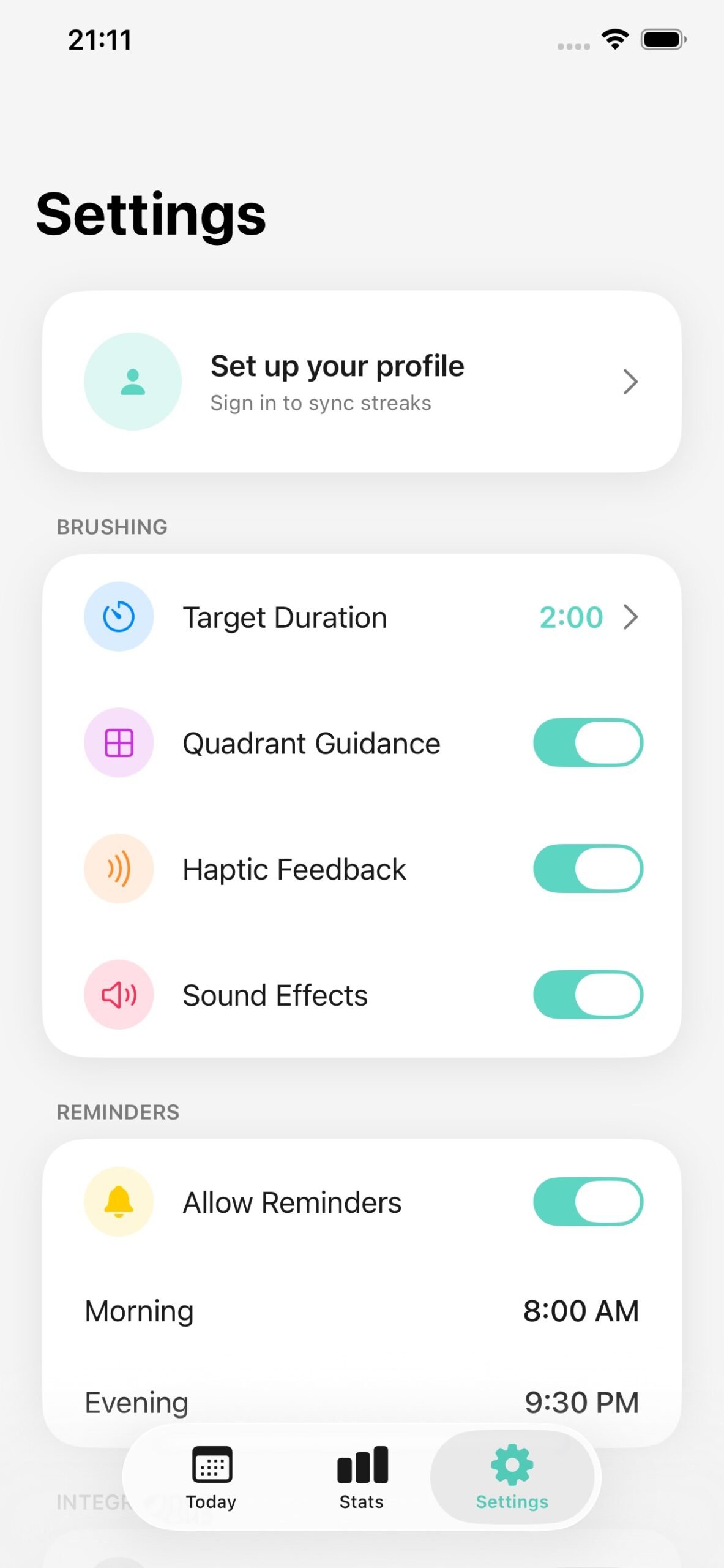 Diş fırçalama alışkanlığını oyunlaştırarak takip eden sağlık uygulaması. 2 dakikalık rehberli fırçalama seansları, kadran takibi, streak sistemi ve Apple Watch entegrasyonu ile ağız sağlığınızı iyileştirin.