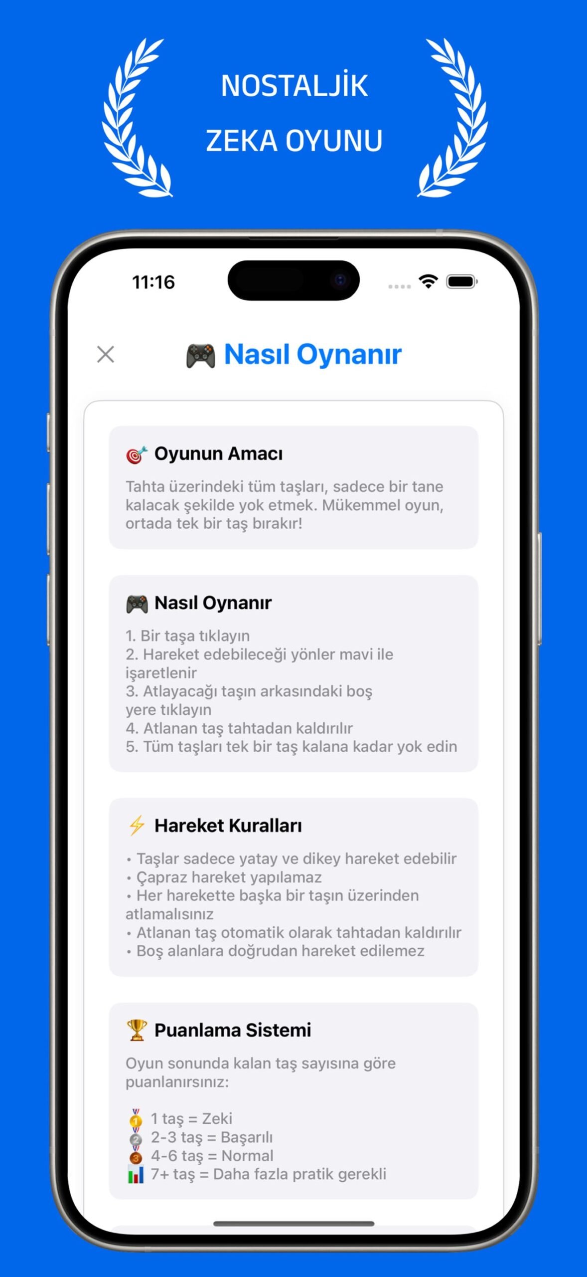 Klasik zeka oyunu Solo Test’in modern iOS versiyonu! 7×7 oyun tahtasında stratejik hamle mekaniği, 9 farklı başarı seviyesi ve paylaşılabilir skorlarla bağımlılık yaratan bulmaca deneyimi.