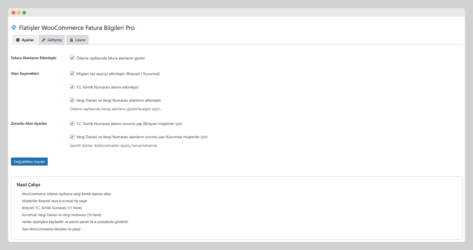 Not: Bu eklenti bir e-fatura veya muhasebe sistemi değildir. Sadece müşterilerinizin TC Kimlik veya Vergi bilgilerini ödeme sayfasında girmelerini sağlar. Toplanan bilgileri kendi muhasebe/fatura sisteminize aktarabilirsiniz.